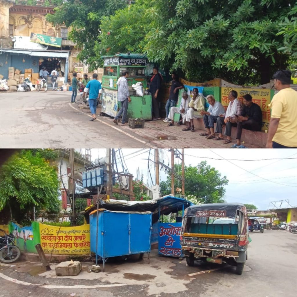 दतिया । किला चौक पार्क के अलग बगल अवैध गुमटी संचालकों ने बना रखा है अड्डा। चारों तरफ कब्जा होने से पार्क की सुंदरता को लग रहा बट्टा। पार्क का रखरखाव करने वाले नहीं देते ध्यान।पार्क के पास से निकलने वाले राहगीरों व स्थानीय लोगों को होती हैं परेशानी। एक तरफ़ कलेक्टर स्वप्निल वानखड़े के निर्देश पर बाजार से अतिक्रमण हटाया जा रहा है। वहीं दूसरी ओर किला चौक पार्क पर गुमटियों का कब्ज़ा हैं। आखिर इन गुमटियों को संरक्षण कौन दे रहा है।