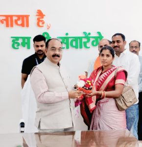 उप मुख्यमंत्री श्री अरुण साव से श्रीमती दिनता कुम्हार सभापति जनपद पंचायत सरायपाली (स्वच्छता समिति) की मुलाकात, क्षेत्रीय विकास पर हुई चर्चा।